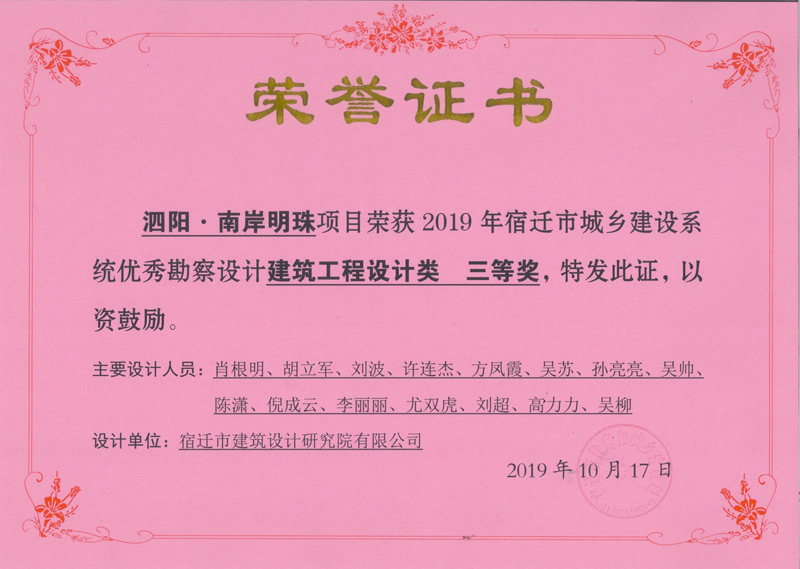 泗陽.南岸明珠建筑工程設(shè)計三等獎