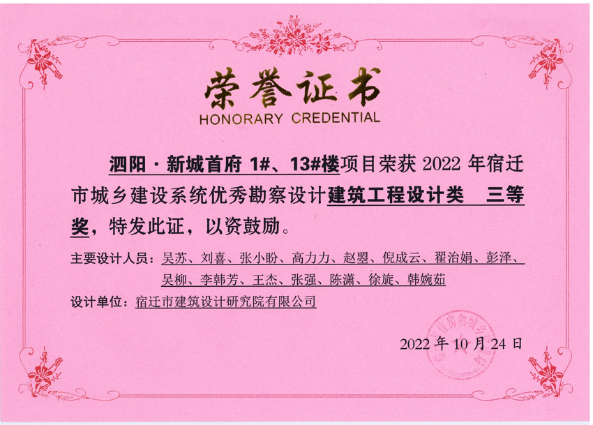 我院在宿遷市2022年度優(yōu)秀勘察設(shè)計項目評選中喜獲獎項
